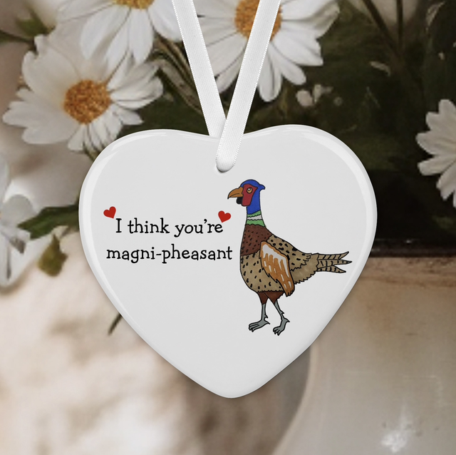 These beautiful ceramic heart decorations feature the stunning Stunning Artwork by Nick Kelly our resident cartoon artist and are approximately 7.5cm x 7.5cm in size and come with a hanging ribbon (ribbon colour may vary)