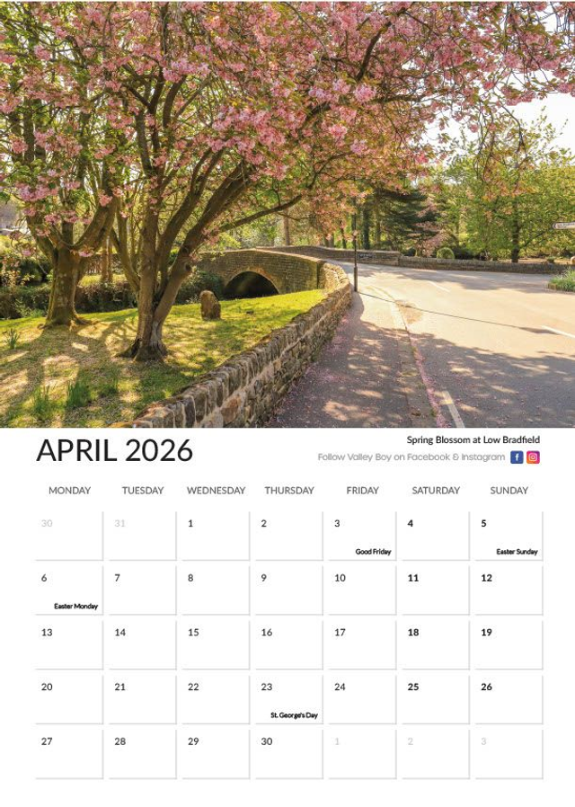 Valley Boy's 2026 Yorkshire Calendar features a mix of Landscape and Wildlife images taken around Valley Boy's corner of South Yorkshire the calendar is A4 in size and has a usable date grid for all your important dates the calendar has a hanging hoop to easily hang your calendar